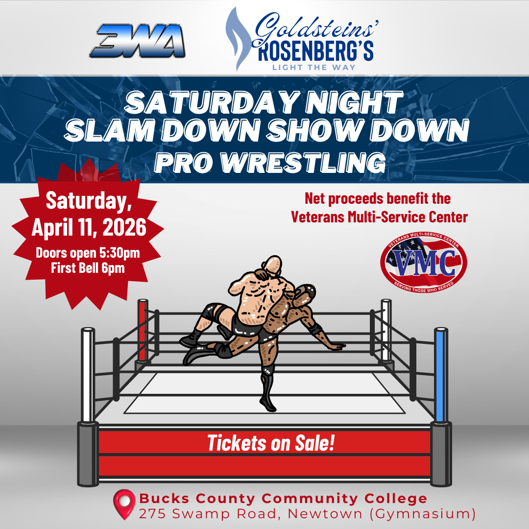 Get ready for high-energy action on April 11th at the Saturday Night Slamdown Showdown wrestling event. Hosted by Goldsteins, this thrilling night of live wrestling entertainment benefits the Veterans Multi-Service Center, helping provide critical services to veterans and their families. Don’t miss this unforgettable event for a powerful cause.